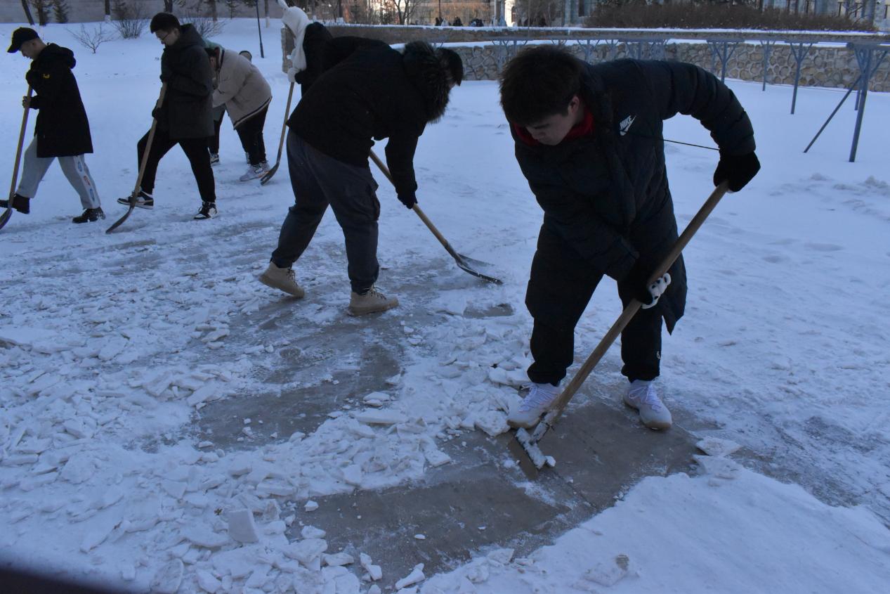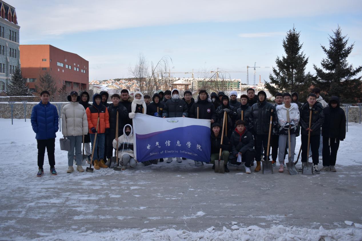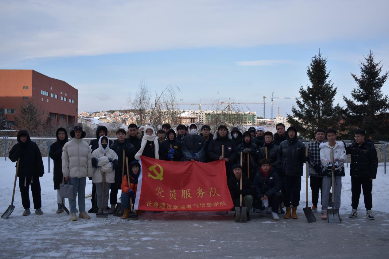 为及时消除积雪道路上的安全隐患,保障同学们的出行安全。2021年11月23日13时,长春建筑学院电气信息学院组织学生党员及团委学生会全体成员于G2公寓楼前开展雪后清扫志愿服务活动。