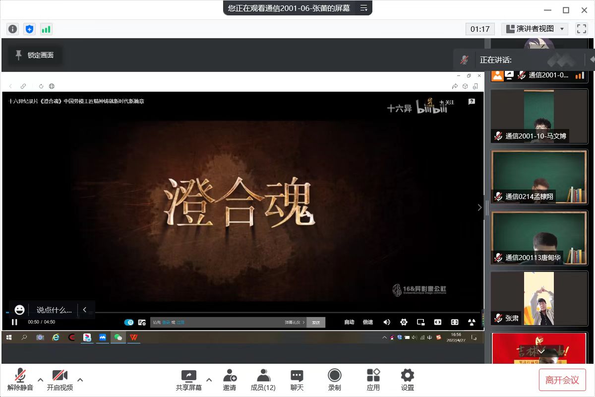 随后,同学们一同观看纪录片《澄合魂》。从视频中,同学们感受到了中国工匠的劳模精神,深切地意识到当下美好生活的来之不易。在各班团支书的组织下,同学们纷纷在班级群内发表了自己的学习感想。