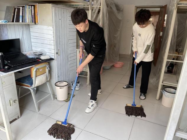 下午2:30分,在各班班长的组织下,各宿舍学生闻令而动,纷纷开始打扫各自宿舍卫生。打扫期间,同学们分工明确。物件的整理摆放、扫地、拖地及垃圾清理等工作全部落实到个人,大家齐心协力,迅速、高效地完成了本次宿舍卫生大扫除工作。