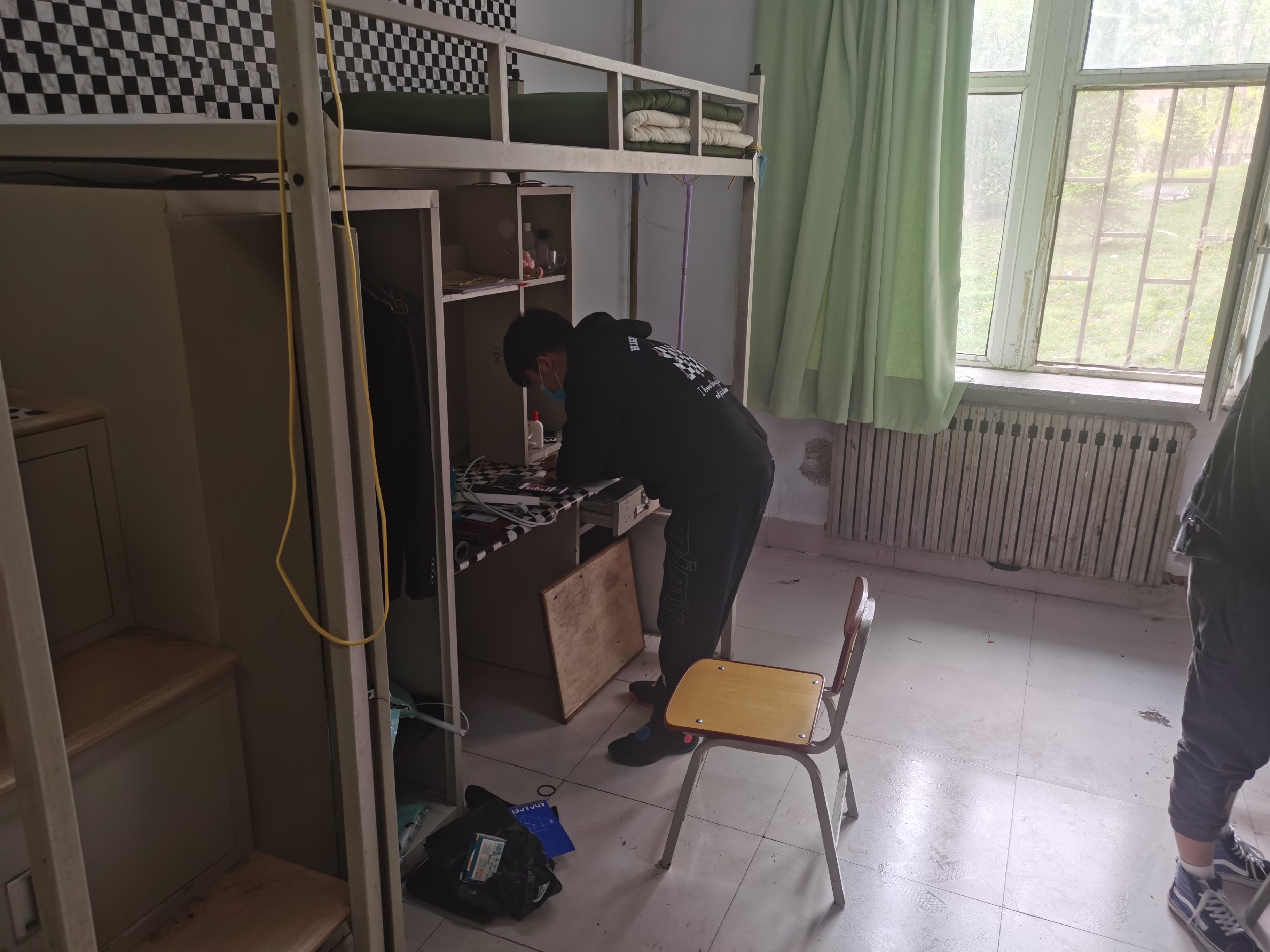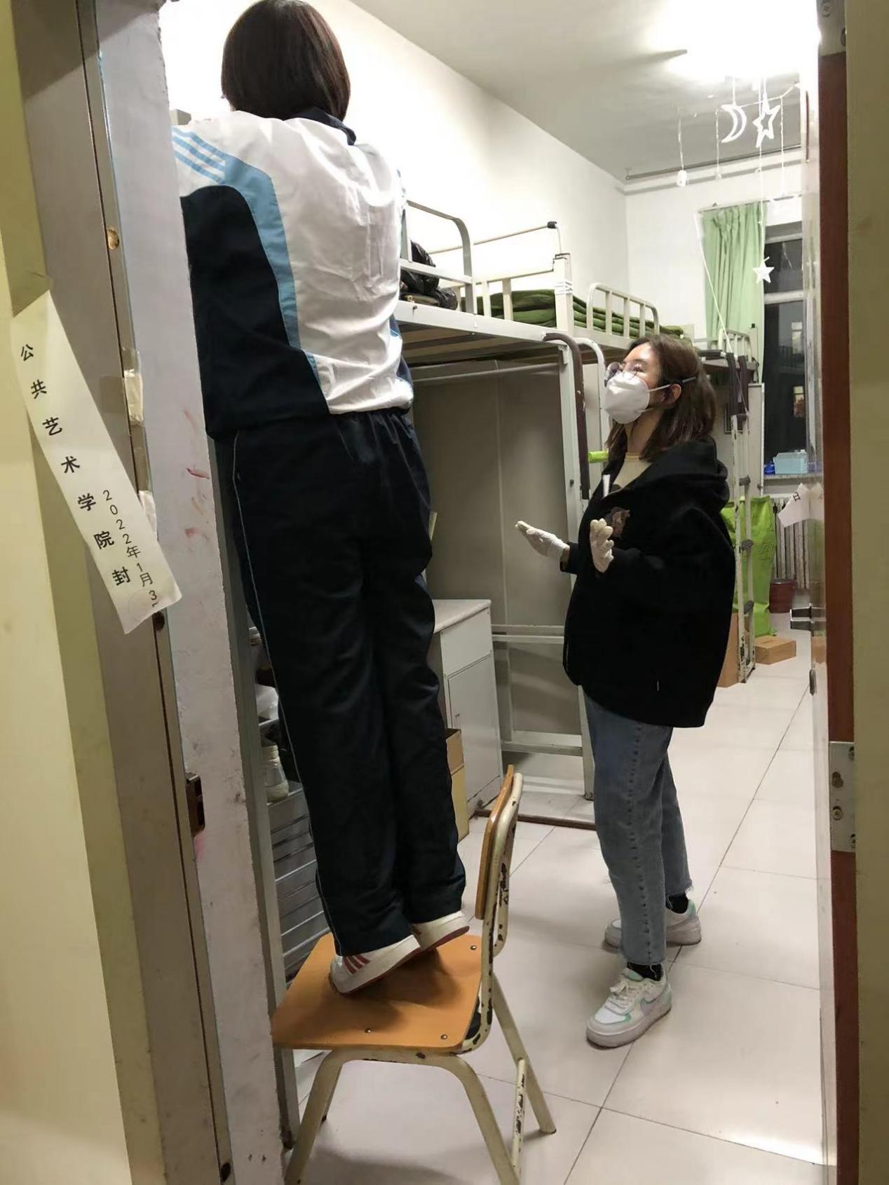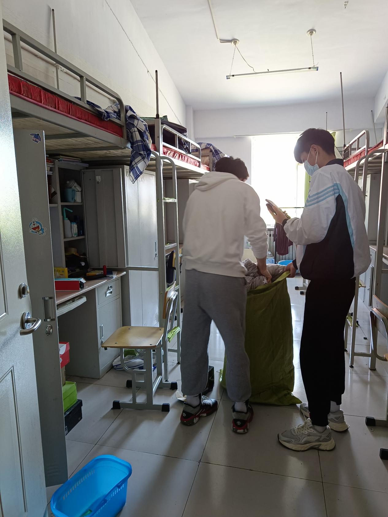 “我是大三辅导员老师,来帮咱们学生收拾寝室的。”