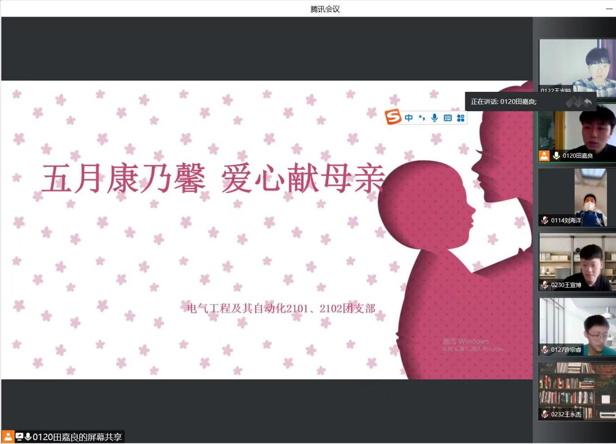 2022年5月11日19时,长春建筑学院电气信息学院于线上开展“五月康乃馨,爱心献母亲”主题班会,本次班会由各班团支书主持,20级、21级全体学生参加。