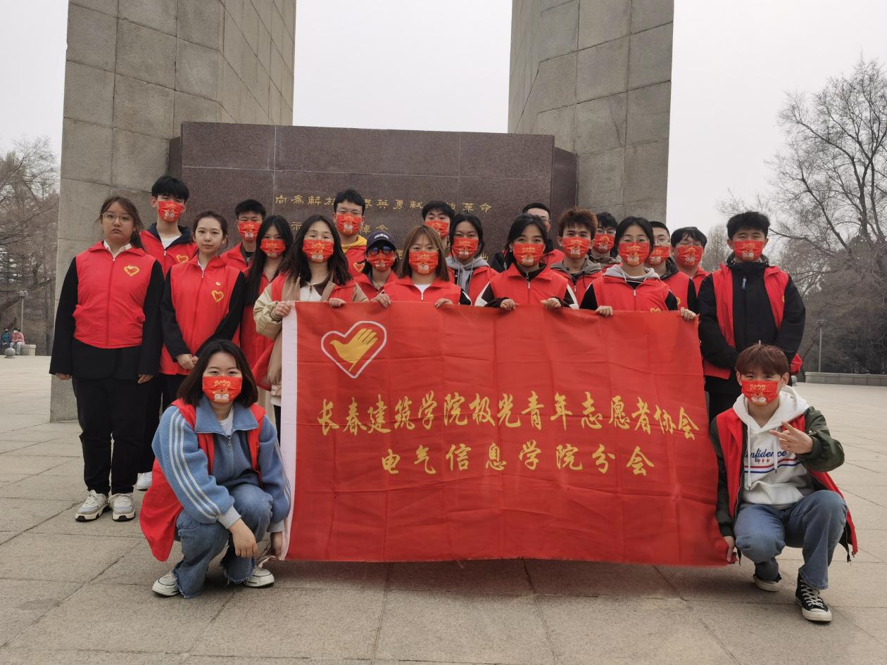 清明来临之际,为悼念、重温革命先烈的丰功伟绩、弘扬雷锋精神,激发大学生的爱国主义精神,培养和践行社会主义核心价值观,2023年4月5日长春建筑学院电气信息学院志愿者管理指导中心全体志愿者在负责任人于新慧的带领下前往南湖公园长春解放纪念碑,开展“清明祭英烈,志愿育新人”为主题的志愿活动。