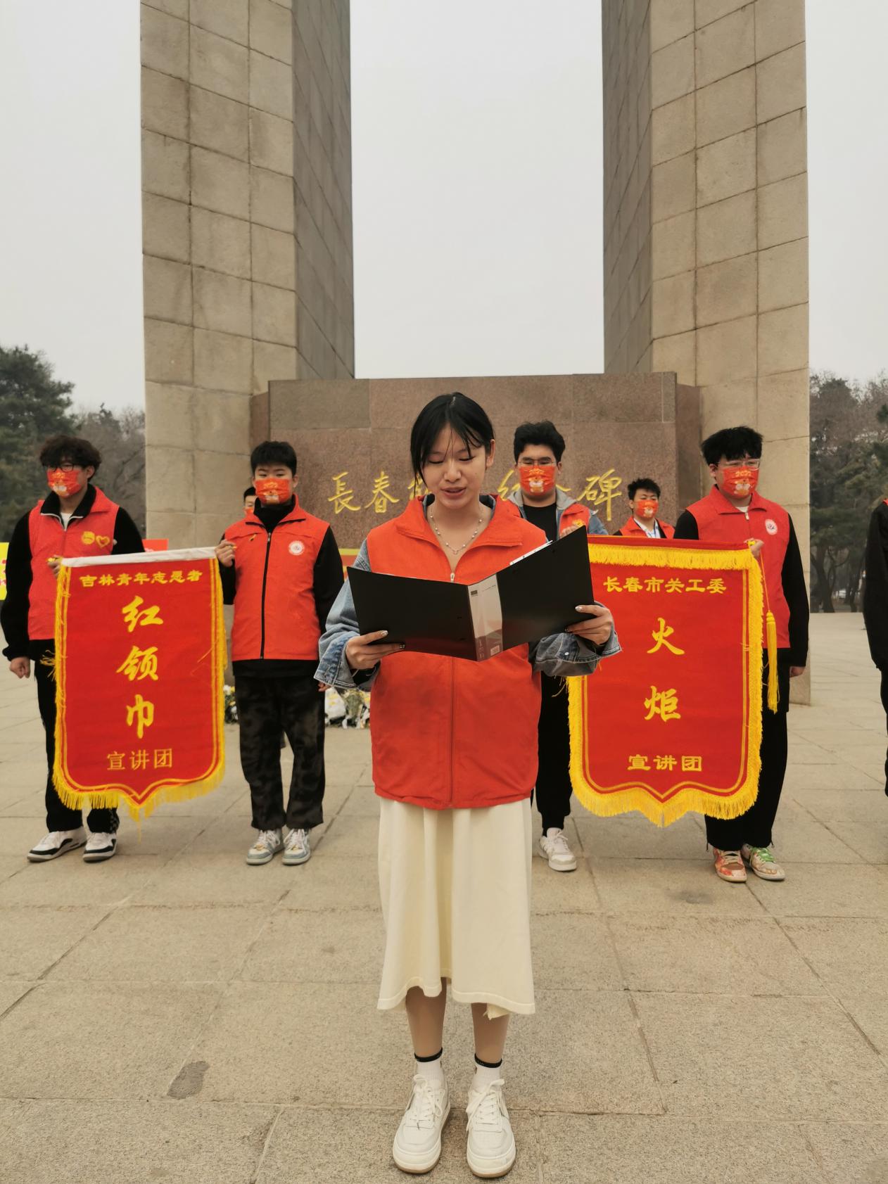 活动开始,吉林省志愿者家园张书记为志愿者们讲述习近平总书记关于弘扬雷峰精神的重要论述、长春解放史。随后,志愿者们开始祭扫长春解放纪念碑,全体志愿者肃立,向英勇牺牲的先烈们默哀一分钟、鞠躬三下以示敬意,每一次都是对先烈的缅怀、都是对民族记忆中的那段历史的重温。默哀结束,王雨欣代表长春建筑学院电气信息学院志愿者管理中心全体人员诵读长春市英烈事迹,让大家深刻理解今日的安宁生活来之不易,是先辈们用生命和鲜血给换来的,我们更要加倍珍惜。接着,志愿者们捡拾公园垃圾,呼吁游客志愿环保,构建清新市容。最后,由吉林省志愿者家园仁会长讲解春季卫生小知识,提醒大家预防传染性疾病。