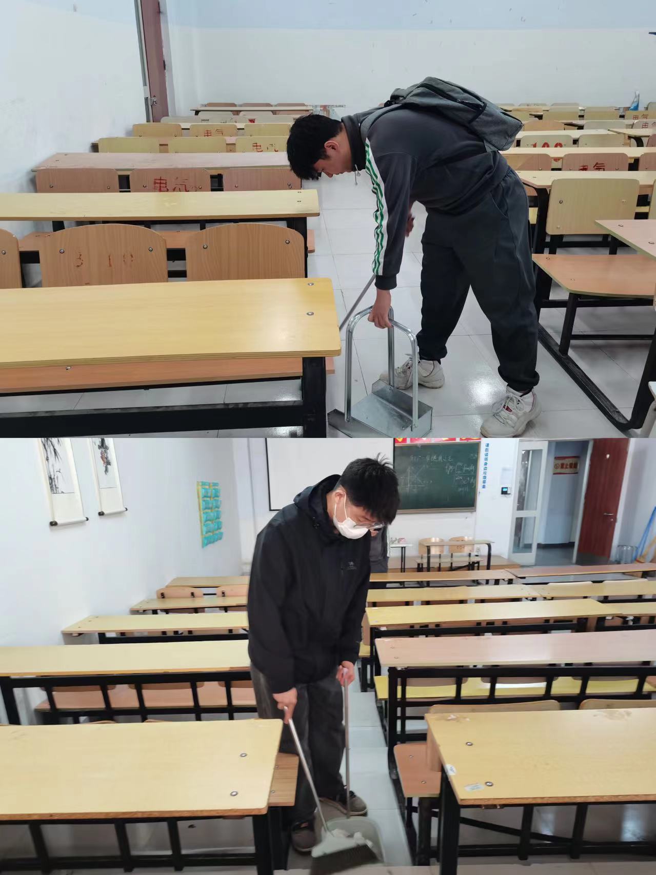 劳动不仅是流传在我们血脉中的民族基因,更是新时代的教育重任。 每天中午下课后,学生党员们准时到达教室进行清扫。各同学分工明确,各司其职,整个活动井然有序的进行着,扫地、擦黑板、倒垃圾……每位党员都认真的做好自己负责的工作,他们热情高涨,不放过每一个死角。