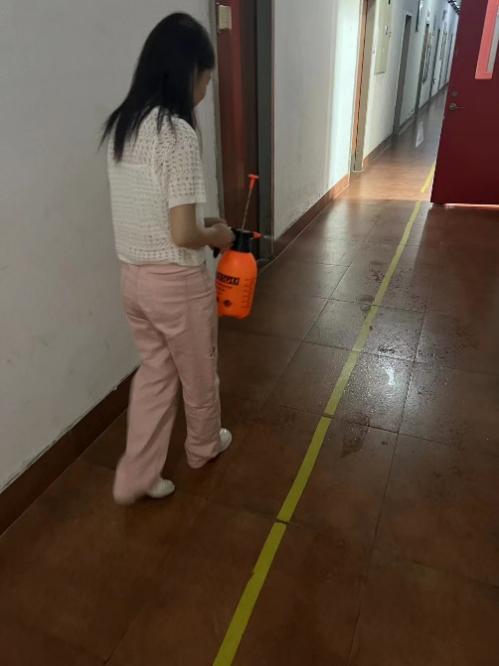 为确保本次联合大扫除活动的顺利开展,大扫除开始前,生活部、公寓管理委员会将教学楼公共区域、教室、宿舍楼公共区进行合理分配。同学们各司其职、齐心协力,转眼间各个区域焕然一新,课桌纤尘不染、卫生工具摆设整齐、抽屉干净无杂物、黑板锃光瓦亮、宿舍楼干净无尘,同时为保障同学们免受复阳的危害公寓管理委员会工作人员将各楼层进行全方位消毒,并督促各寝室定期进行消毒、按时通风。