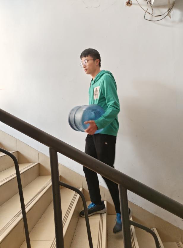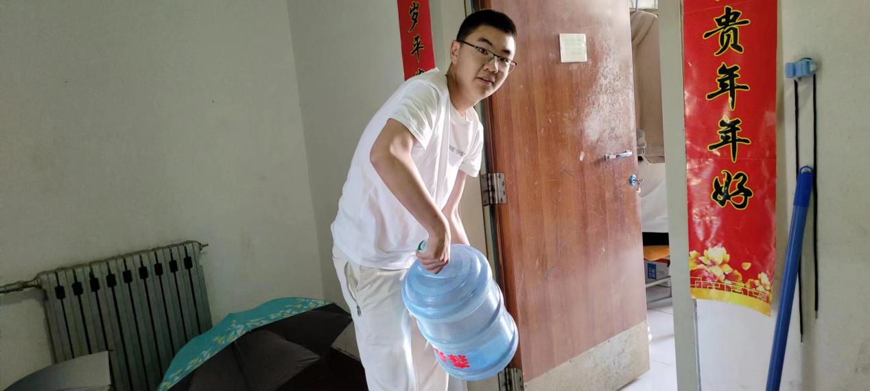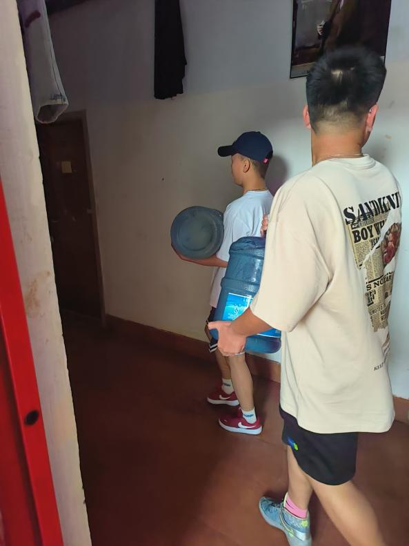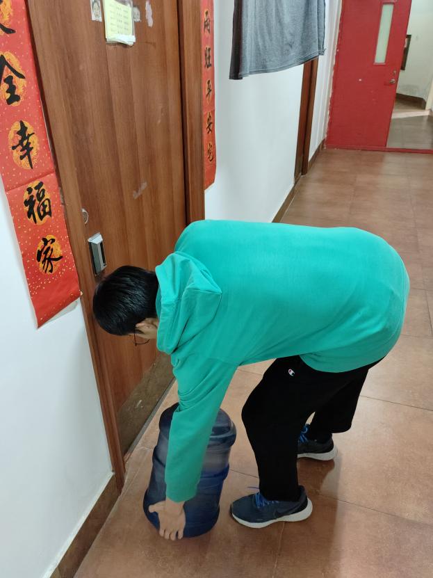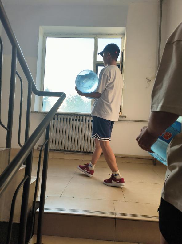 下午五点三十分,全体成员在H5公寓楼大厅集合。负责人根据女生寝室桶装饮用水需求合理分配志愿者们进行送水服务,整个过程有条不紊、爱心满满,让活动顺利完成。