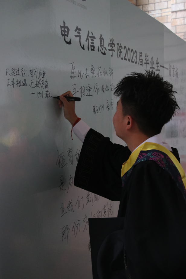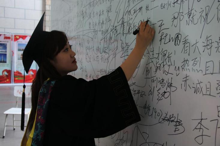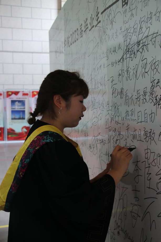 毕业生们纷纷在留言板写下告别校园的最后一句话与签名。