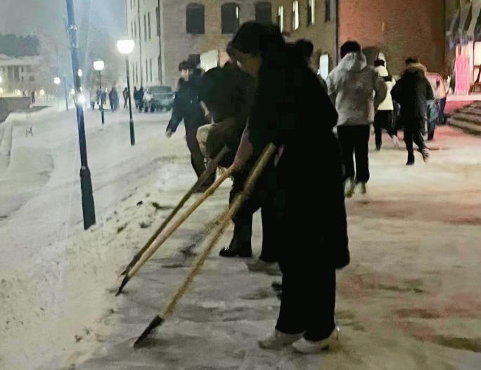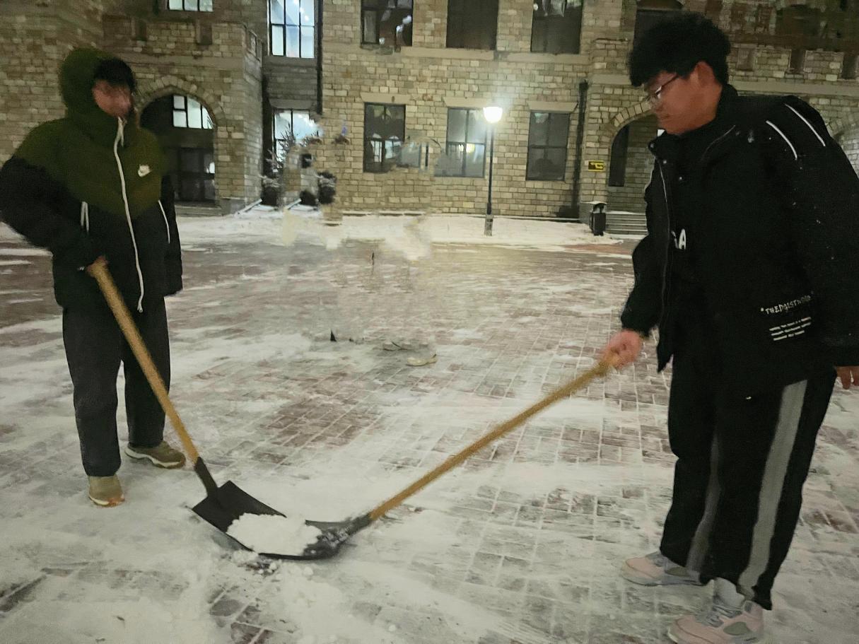 本次扫雪活动在同学们的齐心协力下已顺利完成,此次活动的开展不仅使校园道路变得更加整洁,师生出行变得更加安全,体现出我院学子勤奋吃苦、不畏严寒的青春朝气,更是其安全意识和服务意识的高度表现。