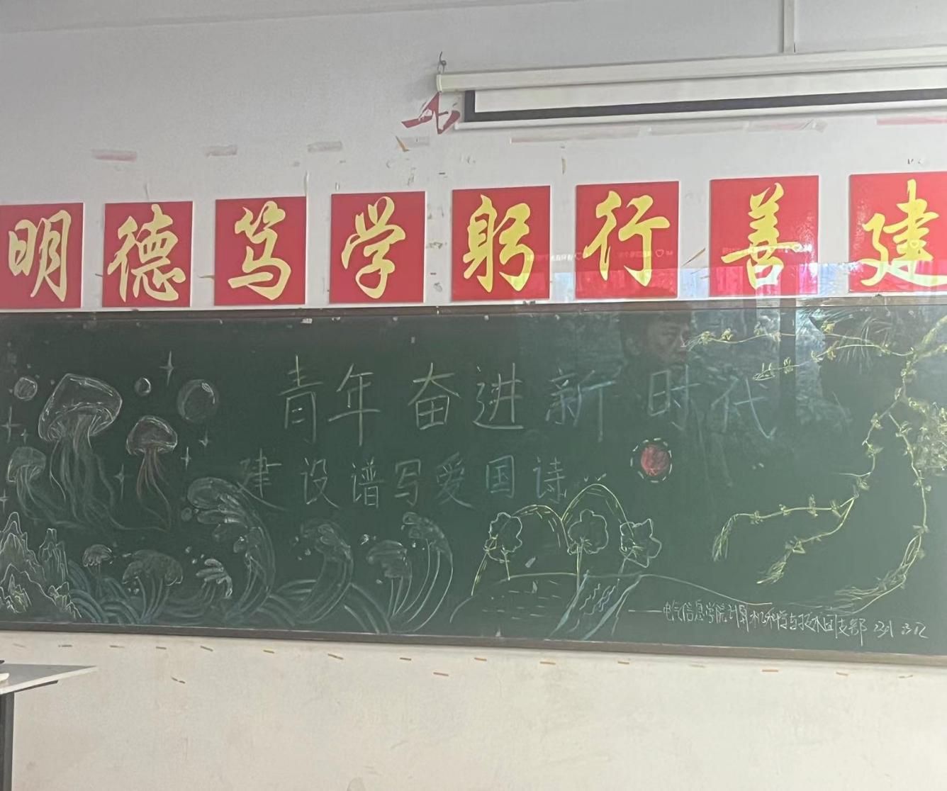 一方板报体现出的是同学们毅勇前行的奋斗精神;是永远热烈的爱国情怀;是传承百年薪火,启航青春征程的历史序章;是燃青春之年华,铸泱泱之大国的时代使命。时光不弃青栀,流年不改初心,愿同学们能够坚定理想信念,志存高远,脚踏实地,勇做时代的弄潮儿。