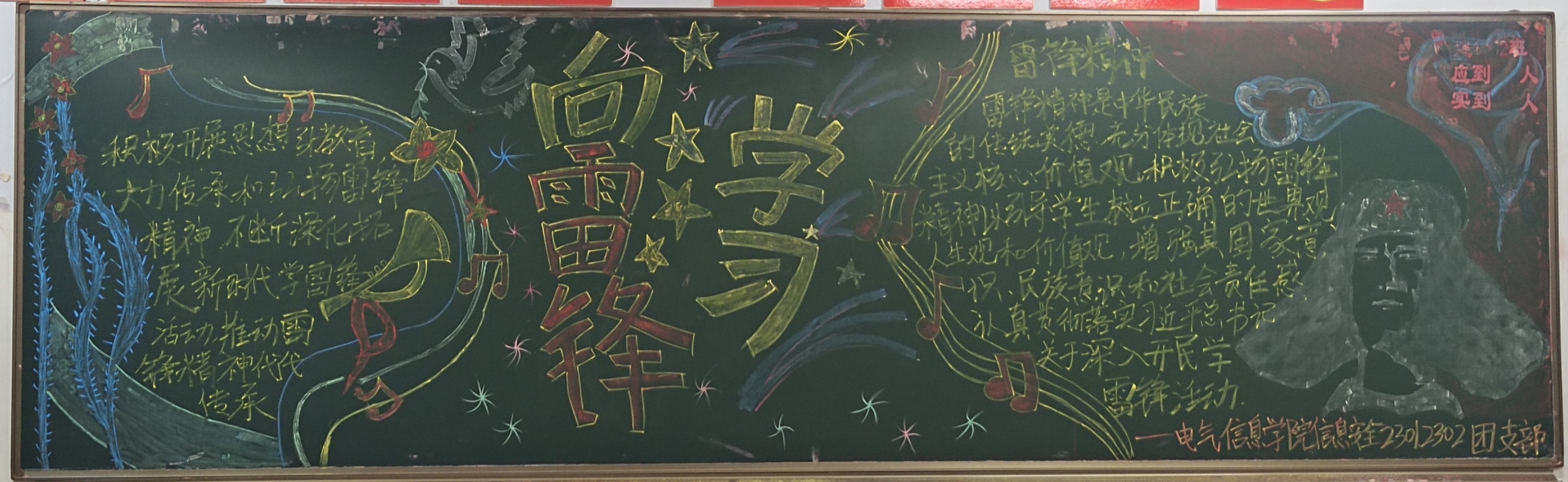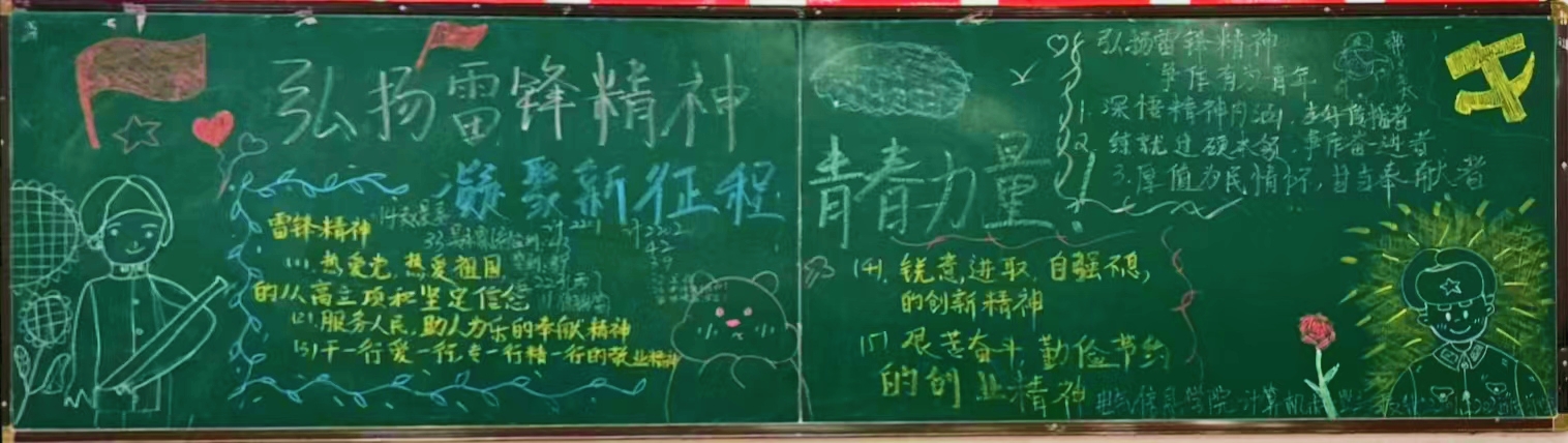 小小板报显书生意气,方寸之间是挥斥方遒。作为新时代社会主义接班人,同学们要积极传承和弘扬雷锋精神,树立正确的价值观,不断深化拓展新时代学雷锋活动的精神内涵,自觉把个人追求融入到人民事业奋斗中,为中国式现代化建设添砖加瓦,为构建和谐社会贡献自己的力量。