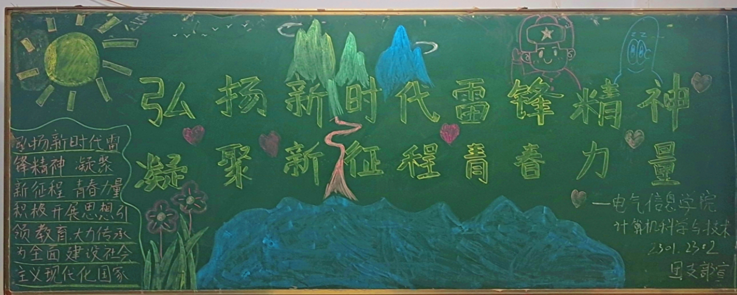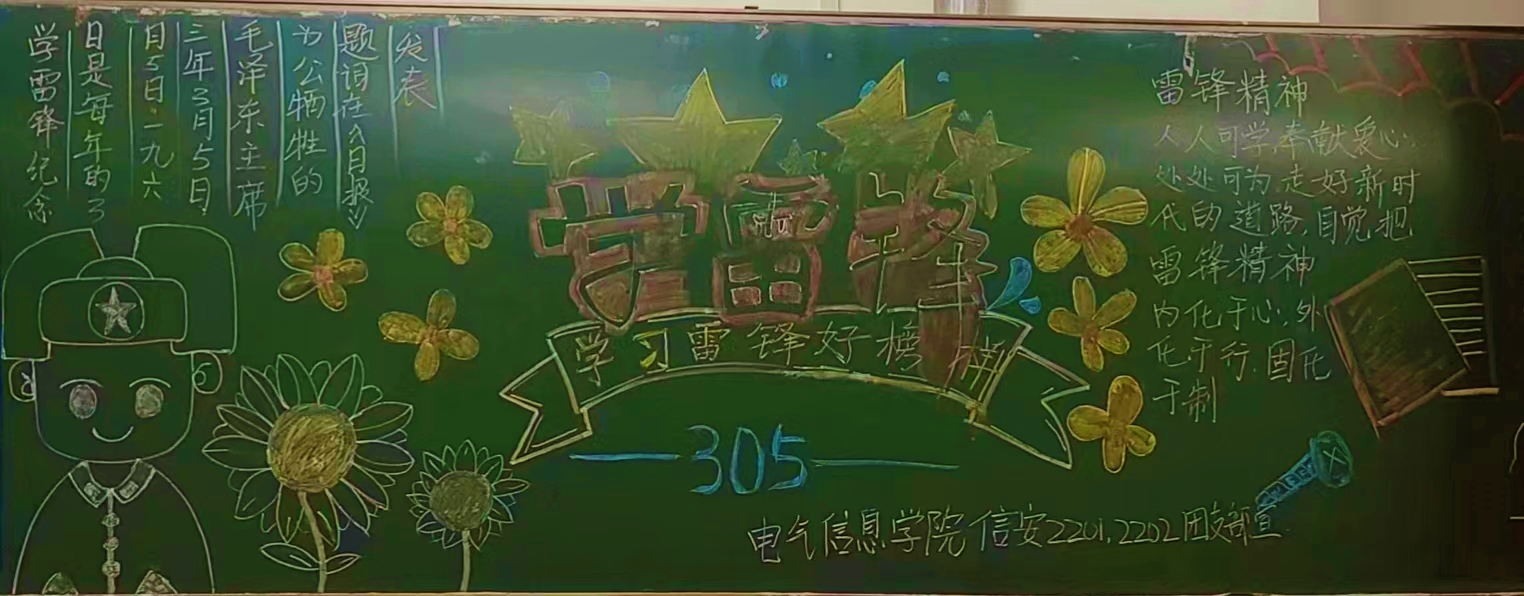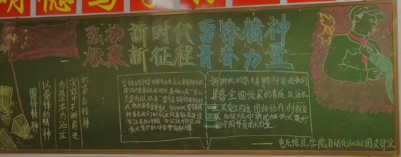 为深化学习雷锋精神,引导同学们树立正确的世界观、人生观和价值观,进一步提高民族意识与社会责任感。2024年3月13日19时,长春建筑学院电气信息学院开展“弘扬新时代雷锋精神,凝聚新征程青春力量”为主题的第一期团会黑板报评比活动,22、23级全体班级参加本次评比。