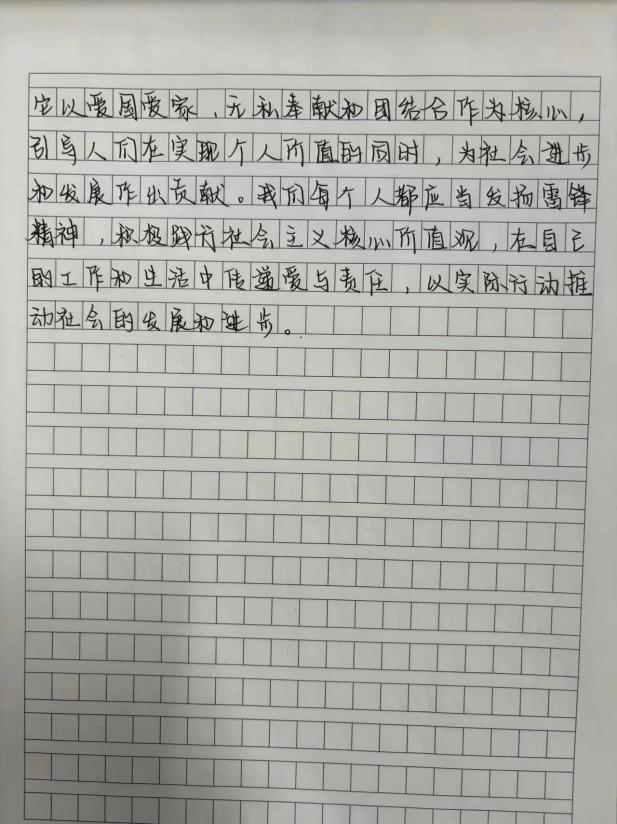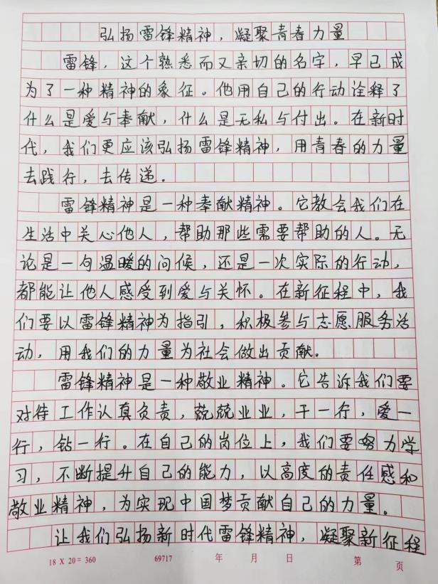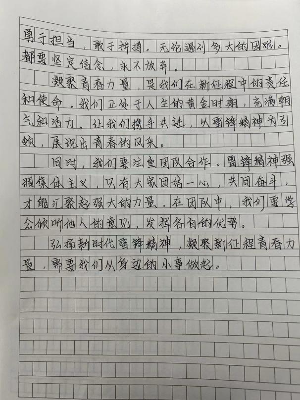 此次“弘扬新时代雷锋精神,凝聚新征程青春力量”征文活动的举办,用实际行动弘扬雷锋精神,倡导社会文明新风,使广大同学对雷锋精神的内涵有了更深刻的了解,形成了积极向上的精神力量,充分展现了我院学生积极向上、乐于助人的精神风貌,进一步加强了我院的精神文明建设。