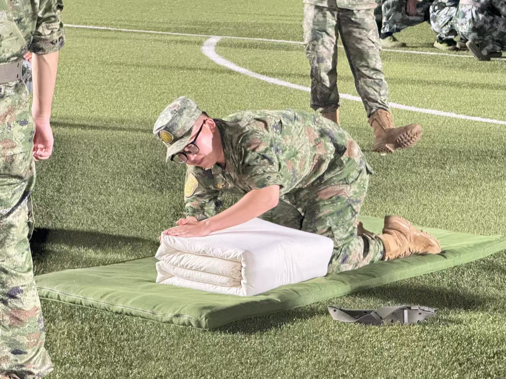 为深化军训育人实效,夯实学生纪律观念,培养严谨细致的生活作风,2025年9月1日1晚,长春建筑学院电气信息学院于学校体育场组织了面向2025级新生的军训叠被子观摩教学活动。此次活动通过现场示范的形式,让新生直观感受军队内务标准,领悟纪律规范的内涵,为迈好大学生活第一步奠定基础。