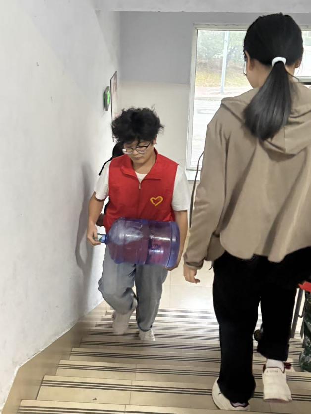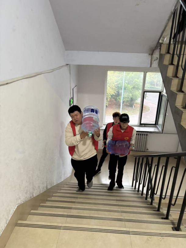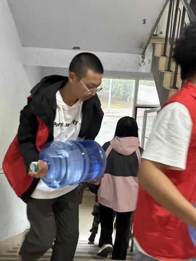 为解决学院女生寝室桶装饮用水搬运困难的问题,展现学生积极向上的青春风采,丰富学院课余文化生活。本院开展“滴水传情”志愿活动。9月23日,13名男生志愿者积极参加,累计为女生宿舍送达26桶饮用水。此次活动不仅切实解决了同学们的生活难题,更让便利与温暖在校园内高效流转,获得了参与同学的一致好评。