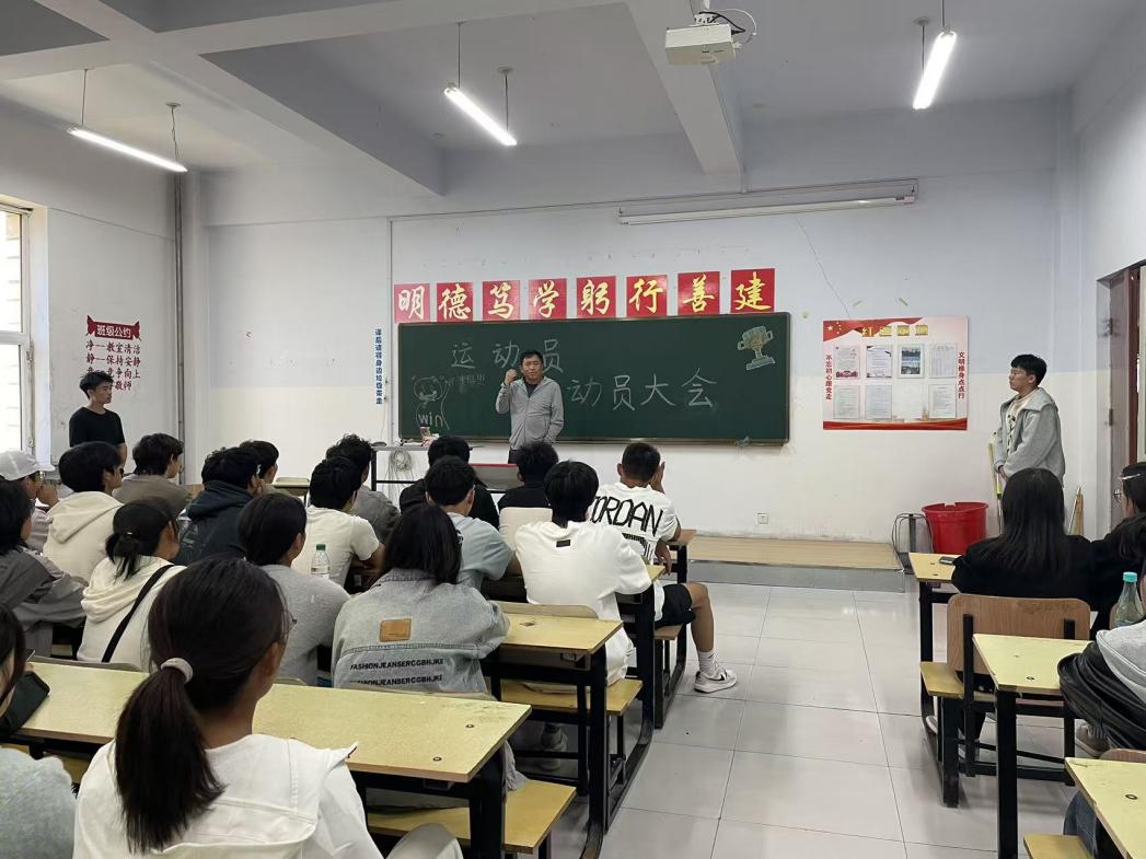 为迎接2025年秋季田径运动会的到来,充分调动运动员的备战热情,确保训练工作高效有序开展。9月25日13时20分,我院于教学楼105教室举行2025年田径运动会运动员动员大会。本次动员会由学院党总支书记穆长青主讲,全体运动员及体育部工作人员参加本次大会。