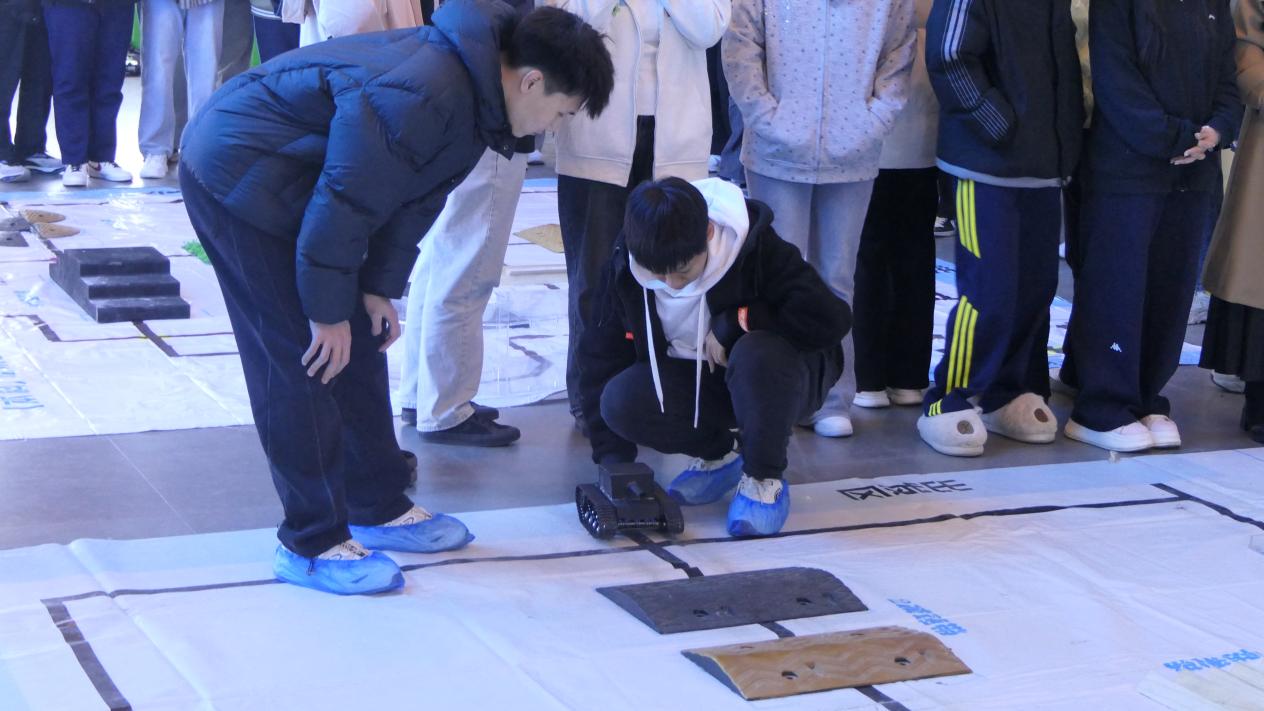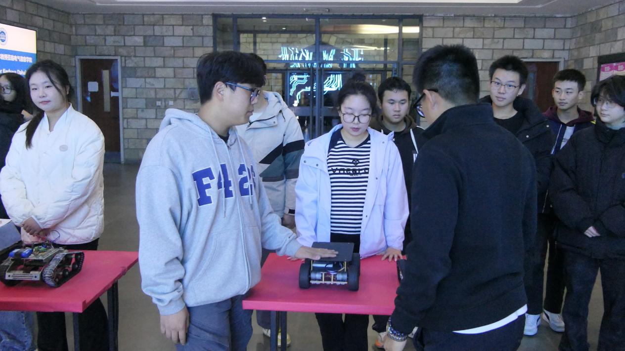 为助力同学们在第六届吉林省大学生人工智能创新大赛中取得佳绩,10月30日晚七点,我院在电气信息学院教学楼一楼大厅成功举办了全地形小车展示活动。本次活动由赛创合作交流协会组织,以直观生动的形式,为同学们全面呈现了参赛小车完成竞赛任务的全过程。现场不仅详细拆解了小车的硬件结构与代码逻辑,还通过实际操作演示,让同学们近距离感受人工智能技术的应用魅力。活动现场气氛热烈,同学们兴趣浓厚,互动踊跃。