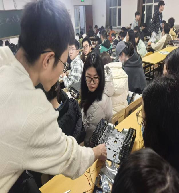 为切实解决同学们在全地形机器人备赛过程中遇到的实操难题,助力大家高效推进第六届吉林省大学生人工智能创新大赛备赛进度,11月12日下午四点半,我院于DX202教室成功举办全地形小车答疑技术指导会。本次活动由赛创合作交流协会主导,聚焦小车接线错误、代码调试难题、设备连接故障及履带不动、电机不工作等核心问题,以“靶向答疑+现场实操+手把手指导”的模式,为同学们扫清备赛障碍。