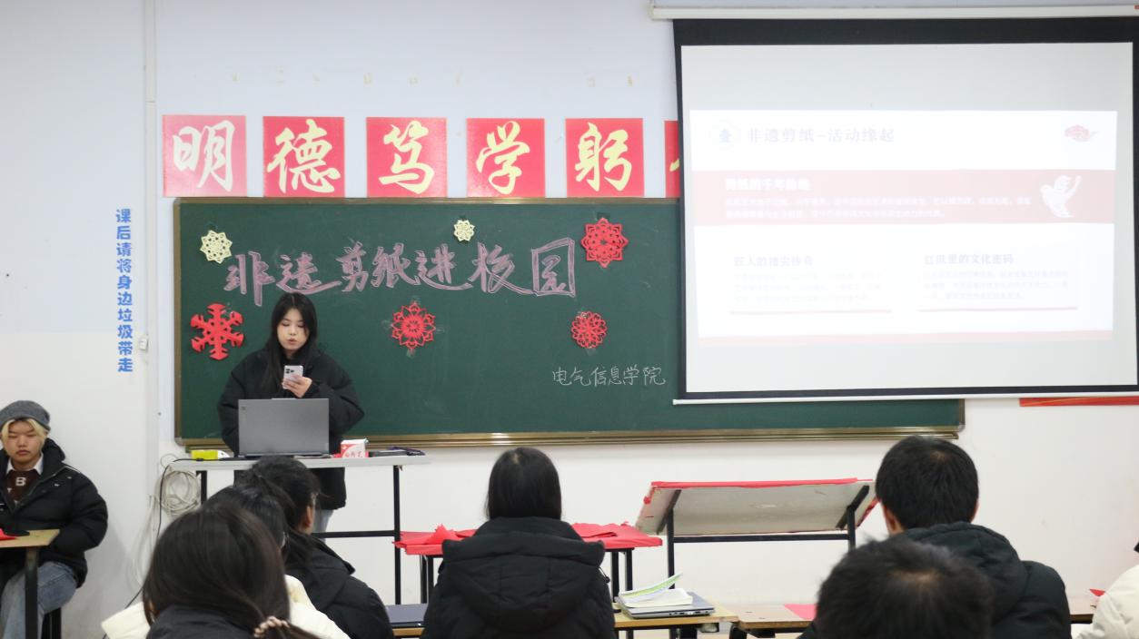 为传承中华优秀传统文化,深耕校园美育沃土,11月27日下午,由我院宣传部主办的“非遗剪纸进校园”主题活动在105教室成功举办。来自各班级的30余名同学共聚一堂,在刀剪方寸之间感受千年非遗的温度与匠心。