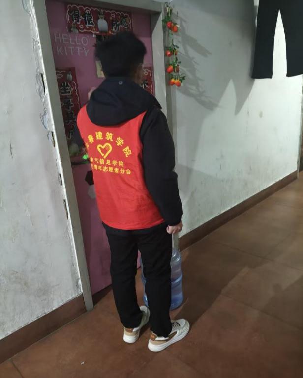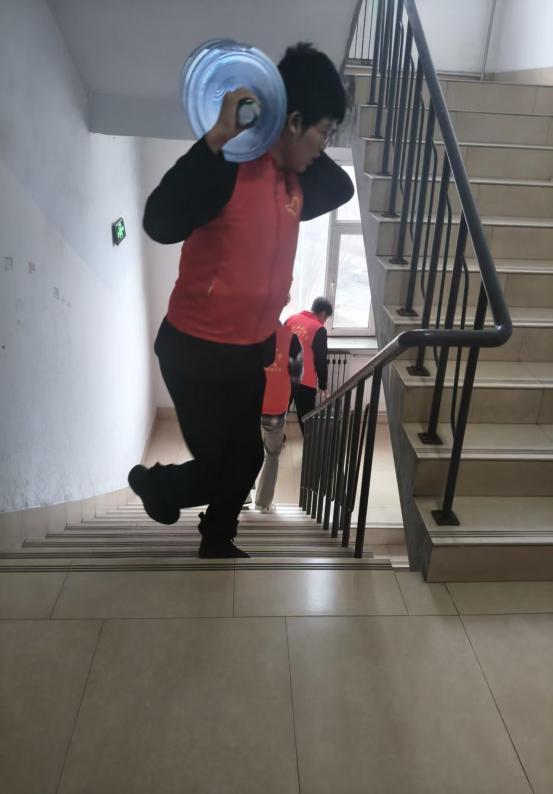 活动当日,志愿者们准时集结,在宿管老师的指导下完成水桶清点、登记核对等准备工作。随后,大家分组行动,扛着沉甸甸的水桶有序走向各栋女生公寓。面对楼层高、水桶重的困难,志愿者们毫无退缩,相互鼓劲、协同配合,脚步坚定地将每一桶水送到女生宿舍门口。从登记预约到上门配送,每一个环节都井然有序,志愿者们用汗水践行责任,以真诚化解不便,用青春力量为同学们的校园生活保驾护航,充分展现了我院学子的良好精神风貌。